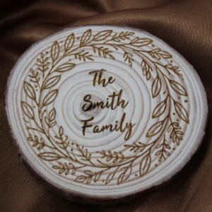 Round Personalised Handmade Family Name Engraved Wood Slice Coaster