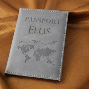 Personalised Silver Grey Leatherette Engraved Passport Cover Holder Wallet