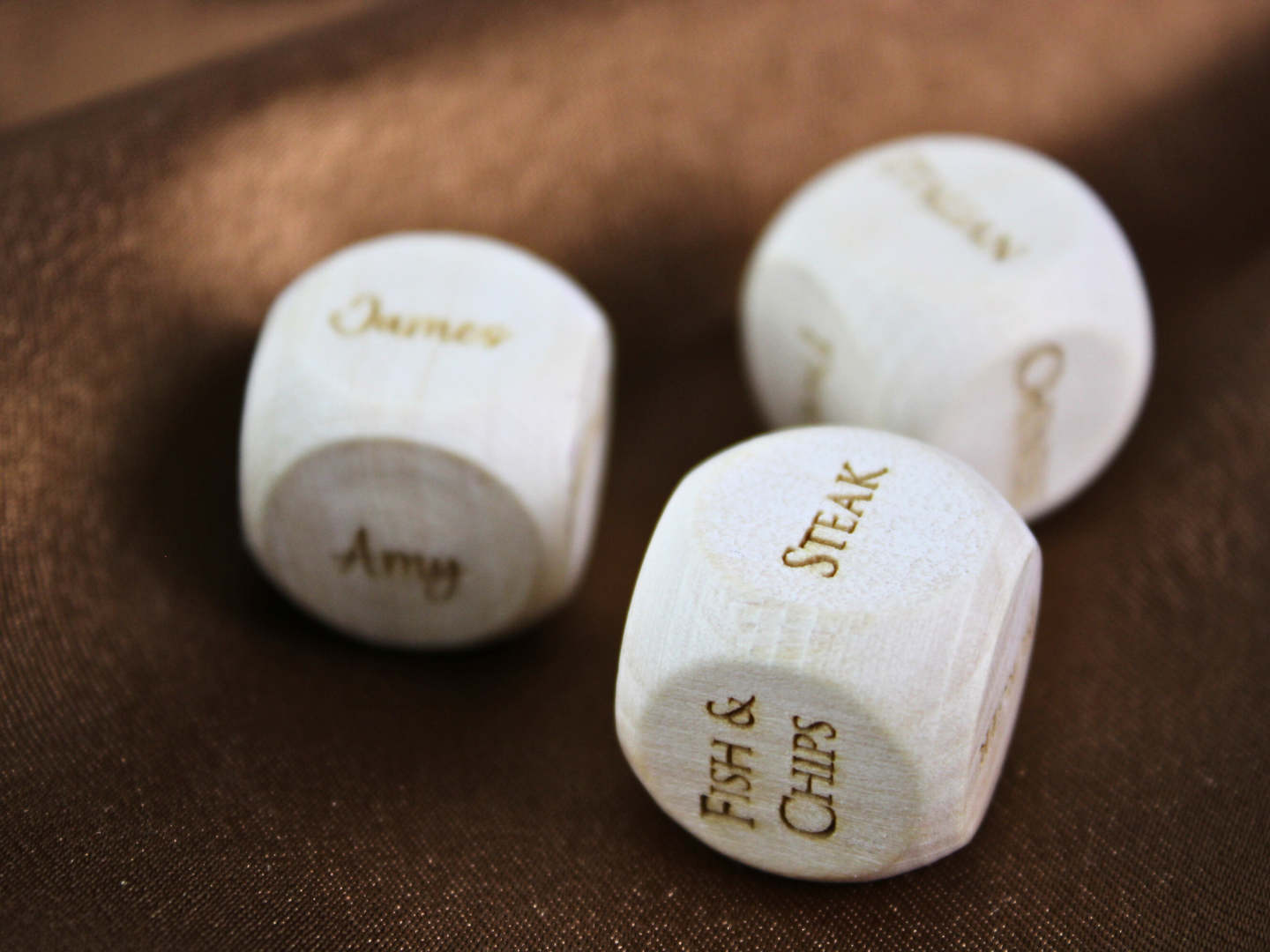 Included: Engraved Dice x 3 – Please ensure 6 options are named